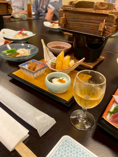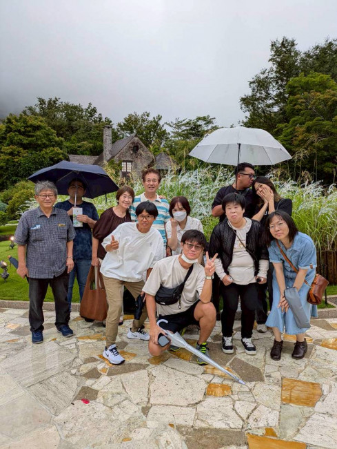 初日はあいにくの雨。予定していた箱根関所の観光は断念し、関所内でランチを楽しんだ後、お土産を少し見て回る程度に。天候には恵まれませんでしたが、「ガラスの森美術館」では美しいガラス作品に囲まれながら、全員で集合写真を撮影。幻想的な庭園とアートに癒され、楽しいひとときとなりました。