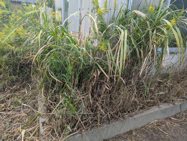 倉庫周りの草は、なんと人の背丈ほどに伸びていて、まるで緑の壁のよう…。